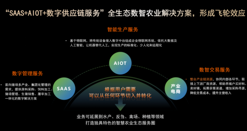 颠末十年成长迭代,农信数智建立了一套全生态数智处理方案,集“数字办理办事+智能出产办事+数字供应链办事”为一体,完整笼盖畜牧养殖全财产链,帮帮农牧企业实现精益办理、聪慧养殖、打制数智合作力。