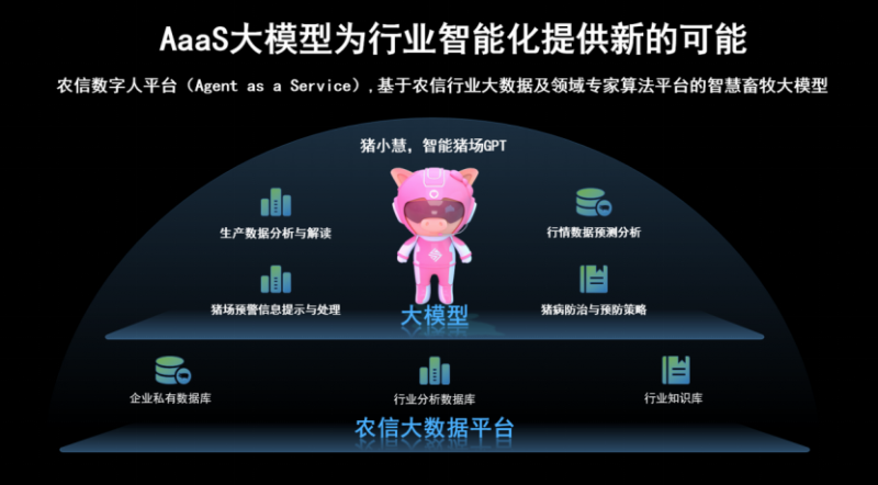 基于十年财产数据沉淀,农信数智正在AaaS平台上孵化出智能养殖范畴首款狂言语模子产物“猪小慧”。该产物深度融合大模子取大数据手艺,为生猪养殖企业供给决策支撑、行情预测、疫病预警等场景化智能办事,鞭策保守猪场向聪慧化运营转型。