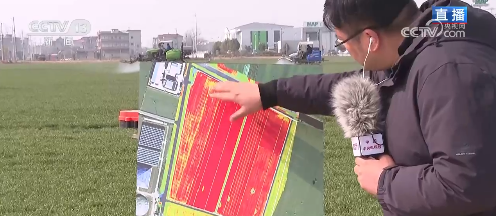 记者手里这张图片就是正正在施肥的这块麦田的光谱图片。这个红色部门是麦苗长势好的,施肥量就相对偏低。像如许的部门,就是麦苗长势比力差的,需要利用更多肥料来帮帮做物发展。和过去保守的施肥体例比,如许能够无效降低种粮户的成本,避免过度施肥对土壤带来的影响。这项操纵光谱对农做物长势进行识此外手艺不只使用正在田间办理中,还会使用正在对产量的测算中。
