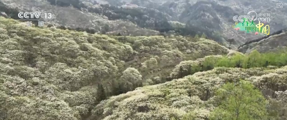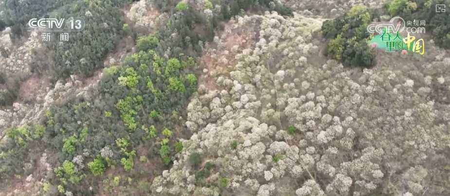 从空中俯瞰,连缀崎岖的山峦被油桐花点缀成一片白色的花海。青山取白花彼此映托,勾勒出一幅如诗如画的春日美景。