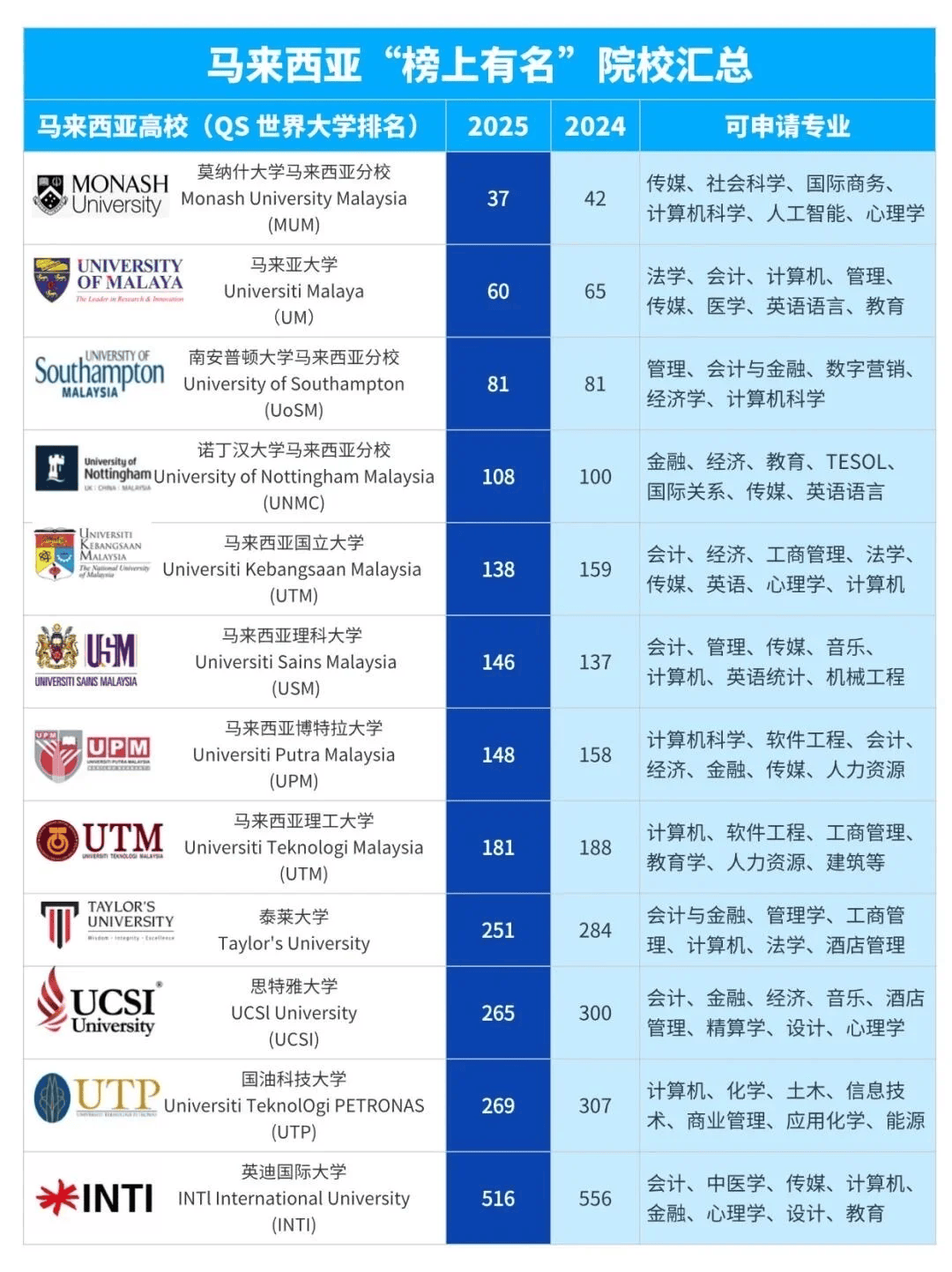 马来亚大学Universityof Malaya1905年建校,公立研究型分析大学,位于马来西亚首都吉隆坡。环承平洋大盟,亚洲大盟,东盟大盟,全球产学将来人才培育策略联盟!以文理学科和医学著称正在很多学科范畴享有世界级的声誉,多个学科范畴进入世界前200名,此中17个学科范畴进入世界前100名。正在2025年高档教育研究机构QS发布排名中,马来亚大学位列全球第60位。
