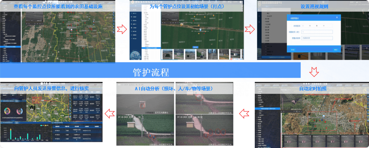 4。 运转管护阶段,遥感监测手艺可以或许及时控制区域所有高尺度农田扶植项目根本设备的运转形态及管护环境。按照“宏不雅-乡镇-设备”的逻辑,以乡镇为单元,统计设备总量环境、无缺环境、损坏环境等内容,并显示问题设备清单列表,为及时维修和管护供给精准消息,确保高尺度农田持久不变运转。